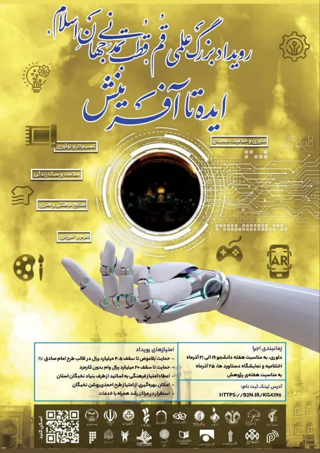 این جشنواره به همت مرکز تحقیقاتی «علوم انسانی و صنایع خلاق احیا» وابسته به معاونت علمی، پژوهشی و فناوری سپاه علیبنابیطالب(ع) و با همکاری گسترده نهادها و دانشگاههای استان قم برگزار میشود. فهرست رسمی نهادهای همکار شامل: